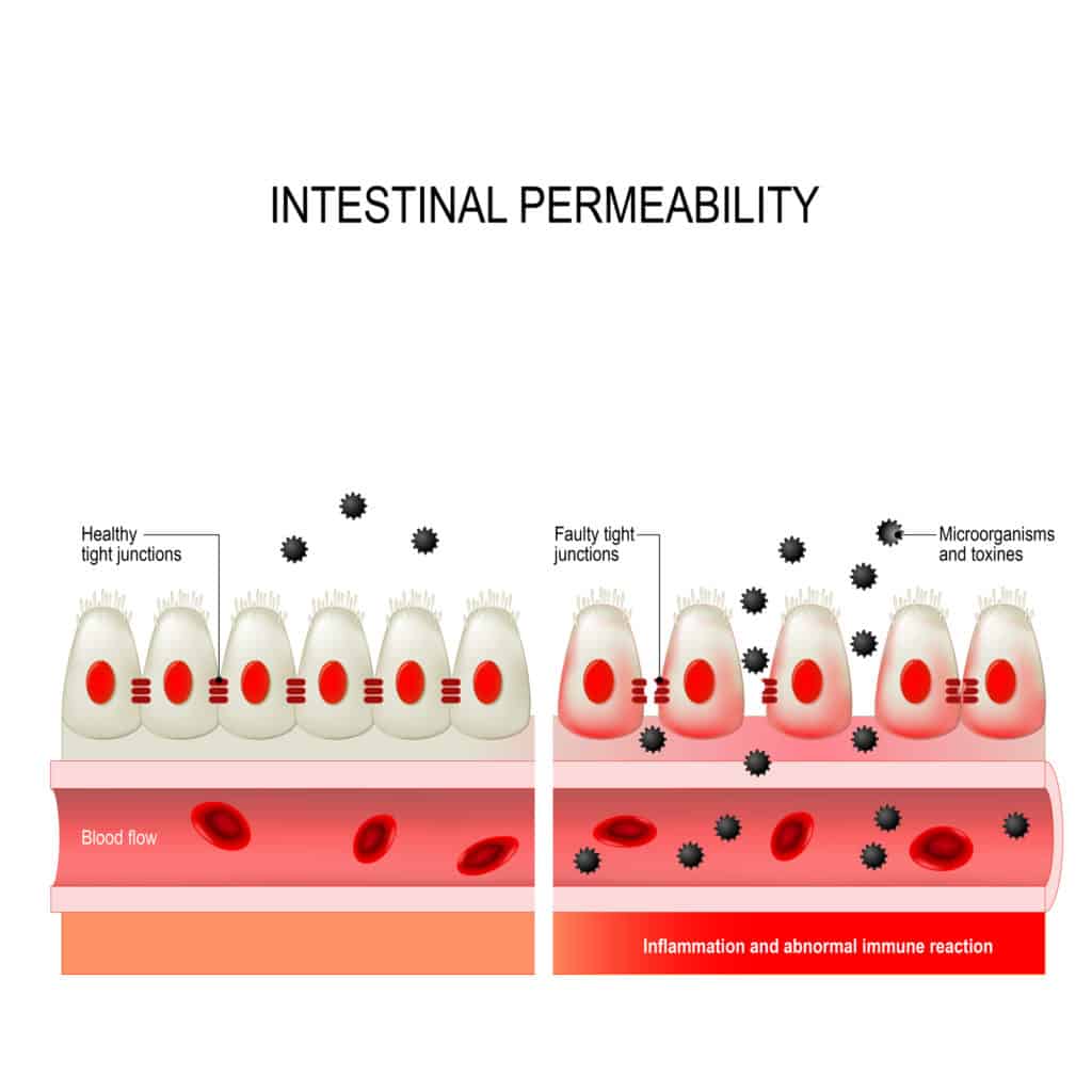 leaky gut. Intestinal permeability. cells on gut lining held tightly together. in intestine with celiac disease and gluten sensitivity these tight junctions are open. substances, microbes and toxines uncontrolled passage into the bloodstream. development of immune and inflammatory reactions. autoimmune disorder.